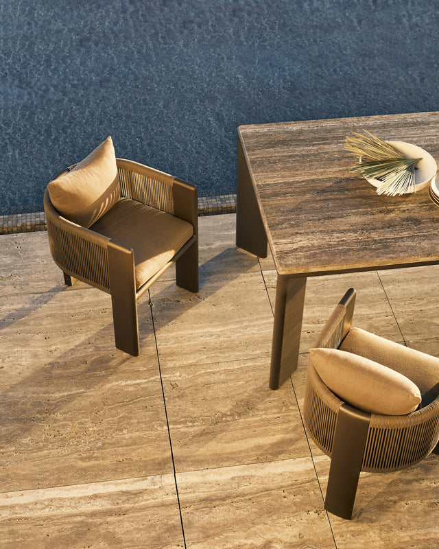 Crafted from high-quality extruded aluminum—stocked in our Powder Coat Bronze finish and available in Asteroid, Bone, Taupe, or White finishes—our aluminum furniture features a superior European powder coating sourced from AkzoNobel® for exceptional weather resistance. Resistant to corrosion and rust, it remains lightweight, strong, and easy to clean.