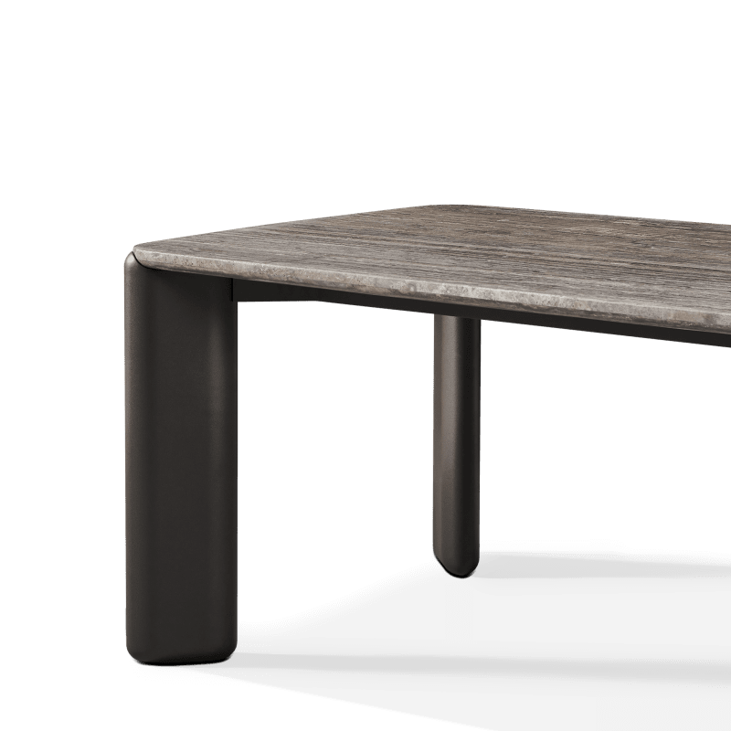 Chloe Aluminum Rectangle Coffee Table | Aluminum Bronze, Travertine Dark Grey,