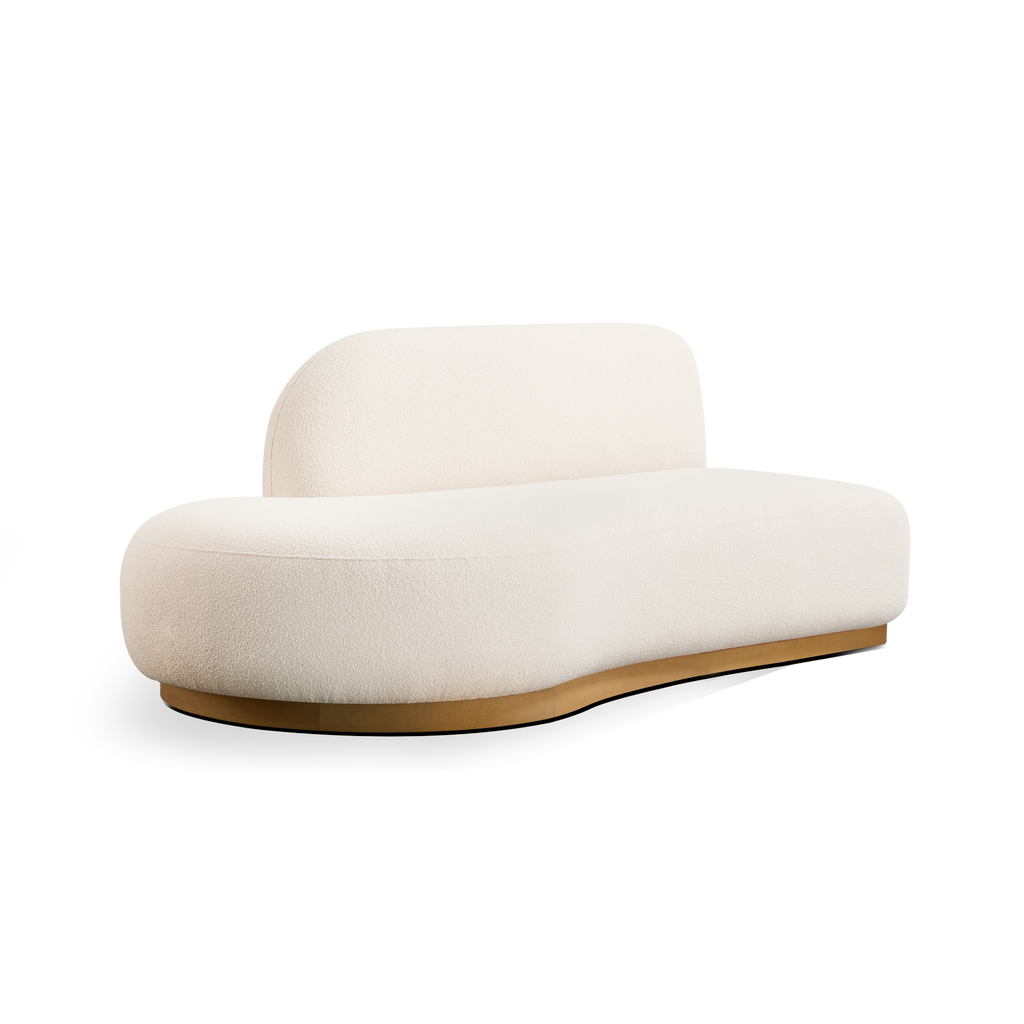 Como Bumper Left — Luxury Outdoor Sofa with Barrel–Back Design. The Como Bumper Left features a barrel–backed design that seamlessly combines the high–end style and comfort of indoor furniture with the durability needed for outdoor living. Expertly upholstered in performance textiles, this outdoor sofa is supported by quick–dry foam and set on a solid teak base in Natural, ensuring long–lasting comfort and resilience. Engineered for a supported sink–in feel with a tight seat, this luxury outdoor sofa offers an elevated, luxurious lounging experience. Perfect for creating a stunning outdoor living space, the Como Bumper Left is designed to provide the ideal combination of comfort and style, whether by the poolside, on the patio, or in your garden lounge area.