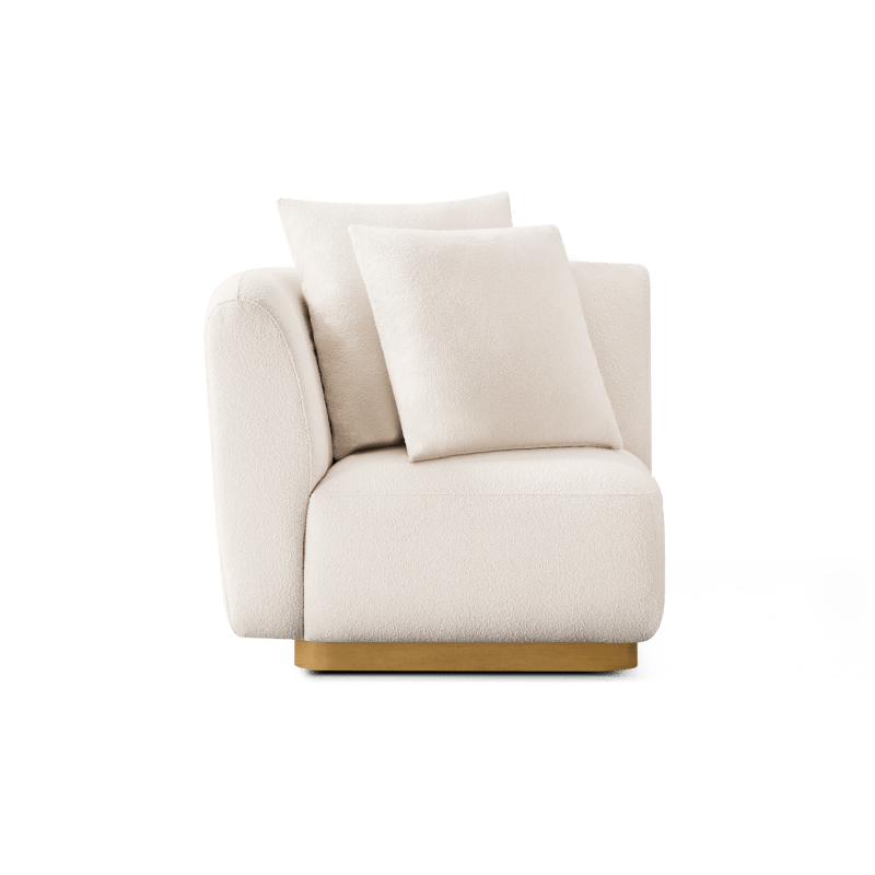 Como Corner — Luxury Outdoor Sofa with Barrel–Back Design. The Como Corner features a barrel–backed design that seamlessly combines the high–end style and comfort of indoor furniture with the durability needed for outdoor living. Expertly upholstered in performance textiles, this outdoor sofa is supported by quick–dry foam and set on a solid teak base in Natural, ensuring long–lasting comfort and resilience. Engineered for a supported sink–in feel with a tight seat, this luxury outdoor sofa offers an elevated, luxurious lounging experience. Perfect for creating a stunning outdoor living space, the Como Corner is designed to provide the ideal combination of comfort and style, whether by the poolside, on the patio, or in your garden lounge area.