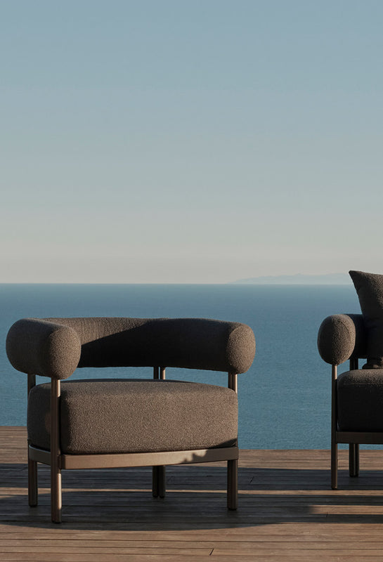 ORGANICALLY-INSPIRED SIGNATURE CURVES AND LUXE OUTDOOR UPHOLSTERY SHOWCASE THE TRADITIONS OF FINE ITALIAN TAILORING REFINED FOR A NATURAL SETTING.