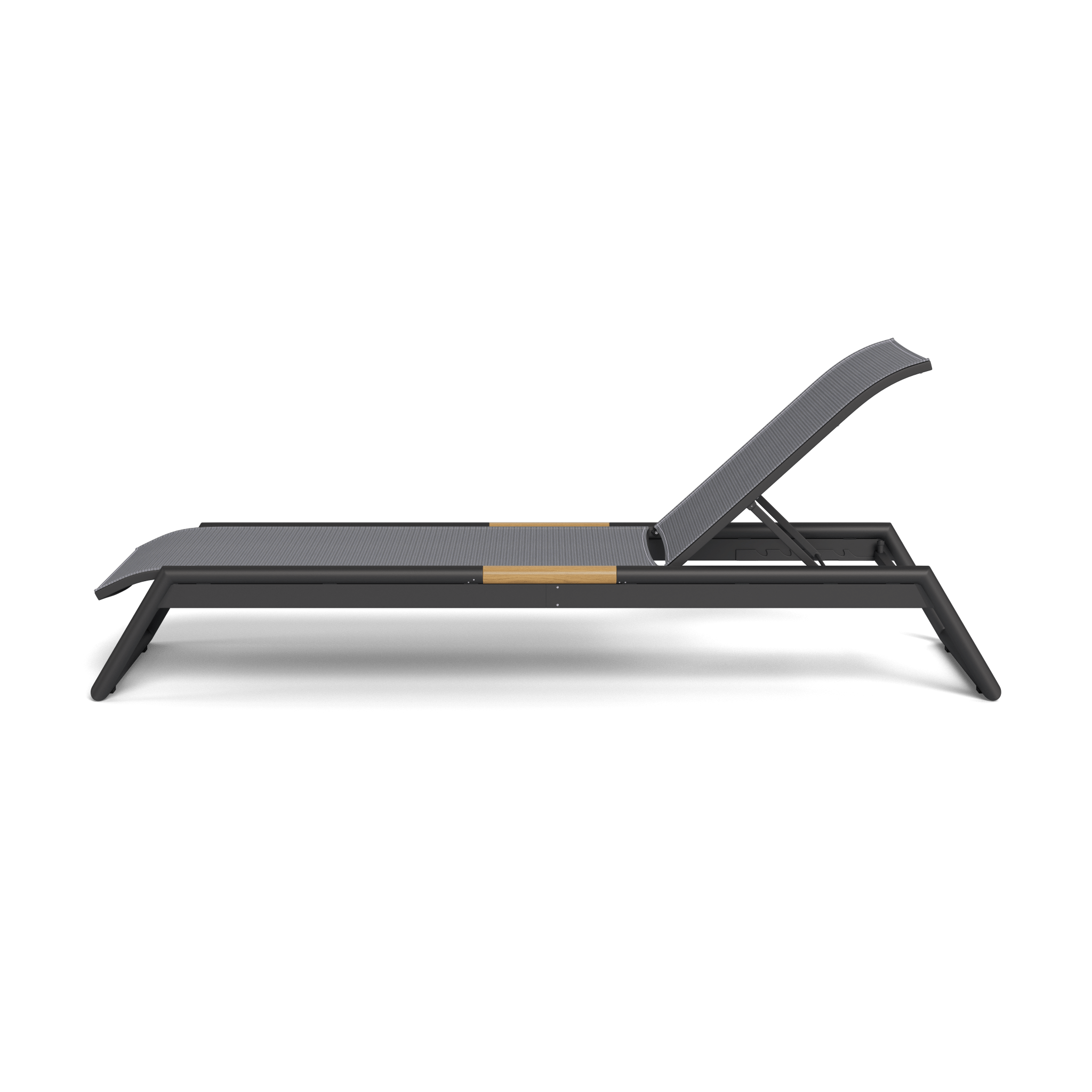 The smaller brother to our Breeze XL collection, our Breeze line mixes thin tubular aluminum construction with solid teak accents for an alluring simplicity. The sleek Breeze Stacking Sun Lounge is modern comfort — with an all–weather Batyline sling for support and easy cleaning, no cushion required. A Harbour bestseller, this versatile piece was specifically designed with a dynamic angle in the legs for effortless stackability for off–season storage.