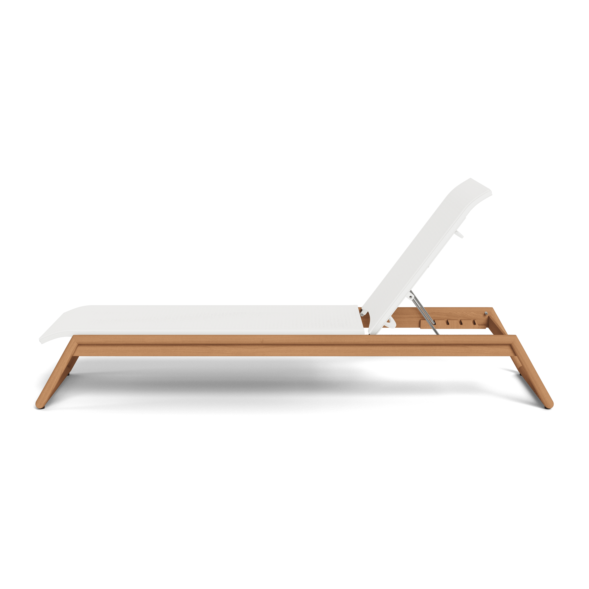 The sun lounges and dining seating feature top-of-the-line Batyline mesh slings sourced and manufactured in Europe by Serge Ferrari. This incredibly strong PVC-coated material enables airy and supportive reclining and is resistant to stretching and tearing while being easy to clean.