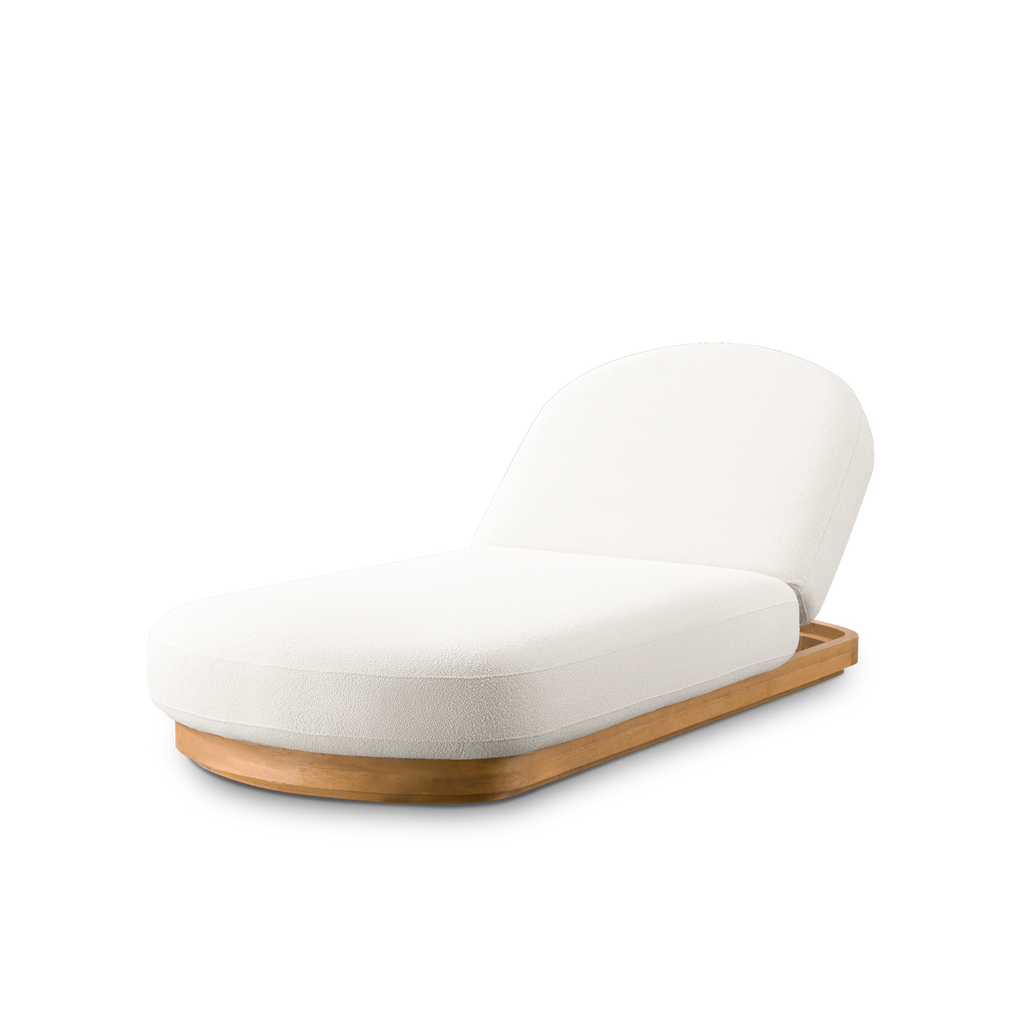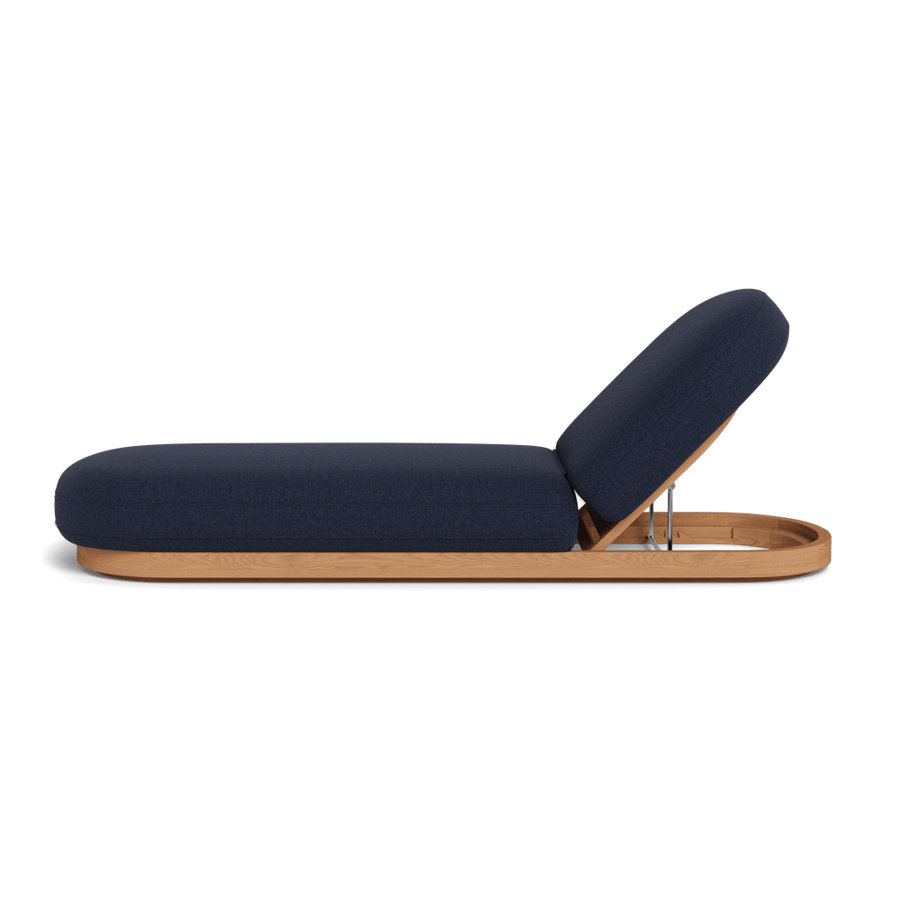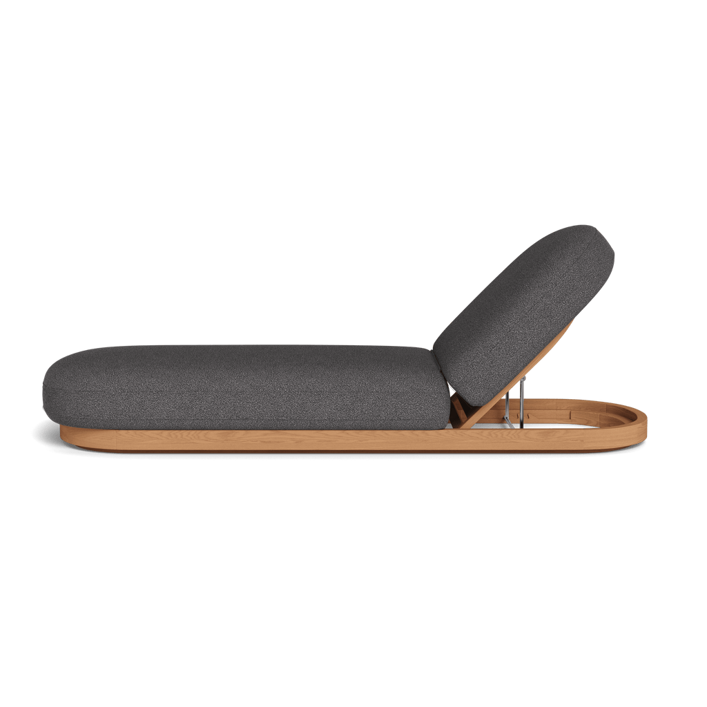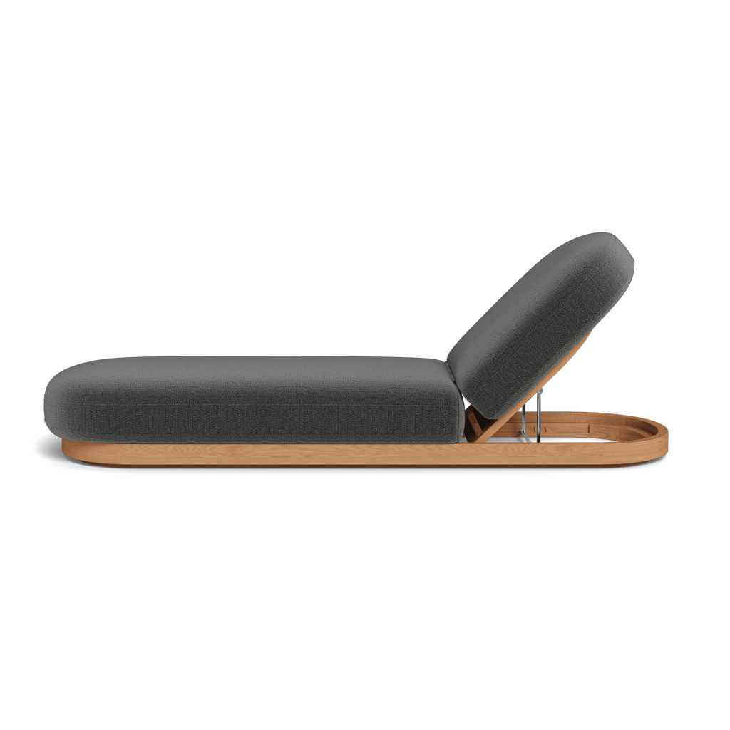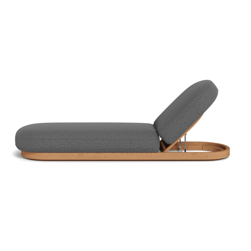 Como Sun Lounge — Luxury Outdoor Chaise Lounge with Adjustable Backrest. The Como Sun Lounge features a subtly pill–shaped design that combines the high–end style and comfort of indoor furniture with the durability of outdoor seating. Expertly upholstered in performance textiles, this chaise lounge sits on a solid teak base in Natural, offering both style and strength. With quick–dry foam for added comfort, it’s engineered for a supported sink–in feel that makes lounging effortless. This luxury outdoor chaise lounge is an elevated take on outdoor relaxation, perfect for your poolside, patio, or garden retreat. The adjustable backrest allows you to discover the perfect lounging incline, ensuring ultimate comfort wherever you choose to unwind.
