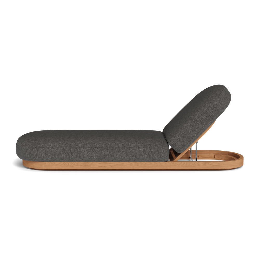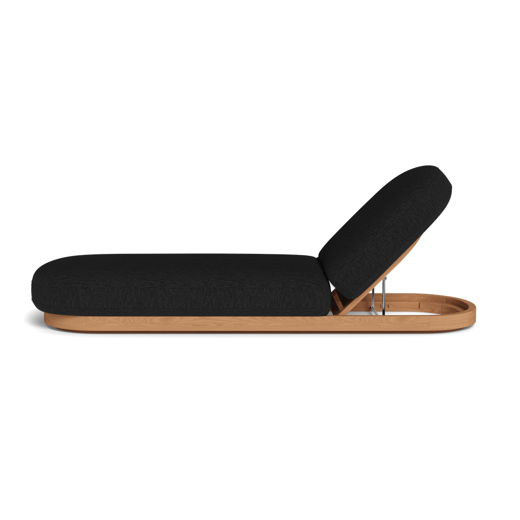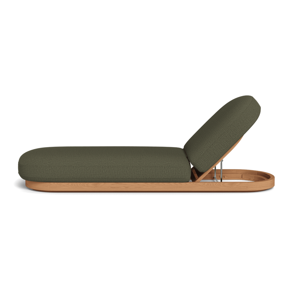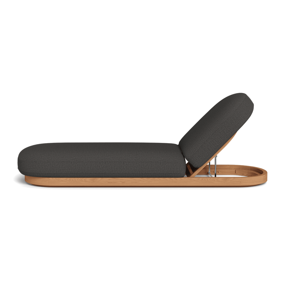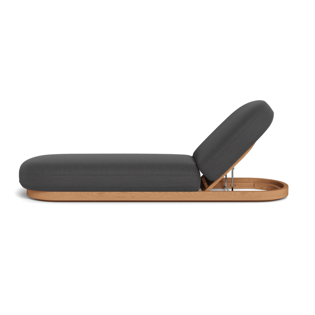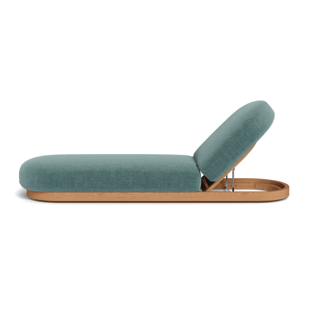 Como Sun Lounge — Luxury Outdoor Chaise Lounge with Adjustable Backrest. The Como Sun Lounge features a subtly pill–shaped design that combines the high–end style and comfort of indoor furniture with the durability of outdoor seating. Expertly upholstered in performance textiles, this chaise lounge sits on a solid teak base in Natural, offering both style and strength. With quick–dry foam for added comfort, it’s engineered for a supported sink–in feel that makes lounging effortless. This luxury outdoor chaise lounge is an elevated take on outdoor relaxation, perfect for your poolside, patio, or garden retreat. The adjustable backrest allows you to discover the perfect lounging incline, ensuring ultimate comfort wherever you choose to unwind.