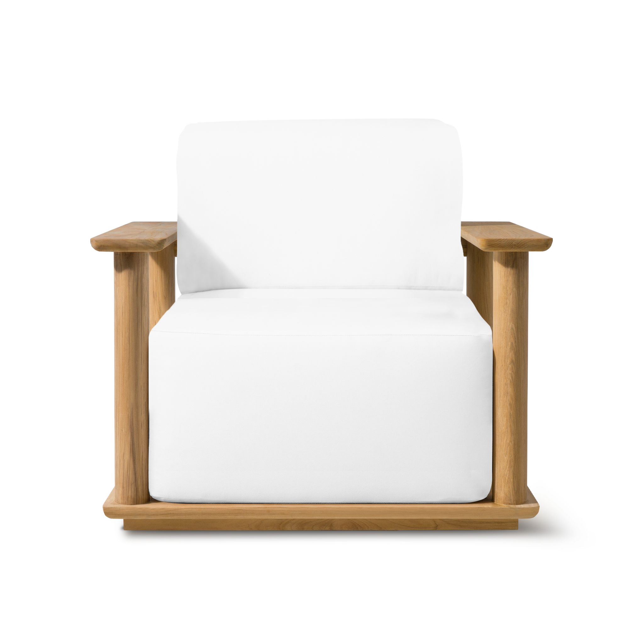 DESIGN ELEMENTS LIKE OVAL-SHAPED LEGS ELEVATE A GEOMETRICAL SILHOUETTE, WHILE DEEP SEATING AND WIDE, FLAT ARMS CREATE COMFORT FOR ALL-DAY LOUNGING.