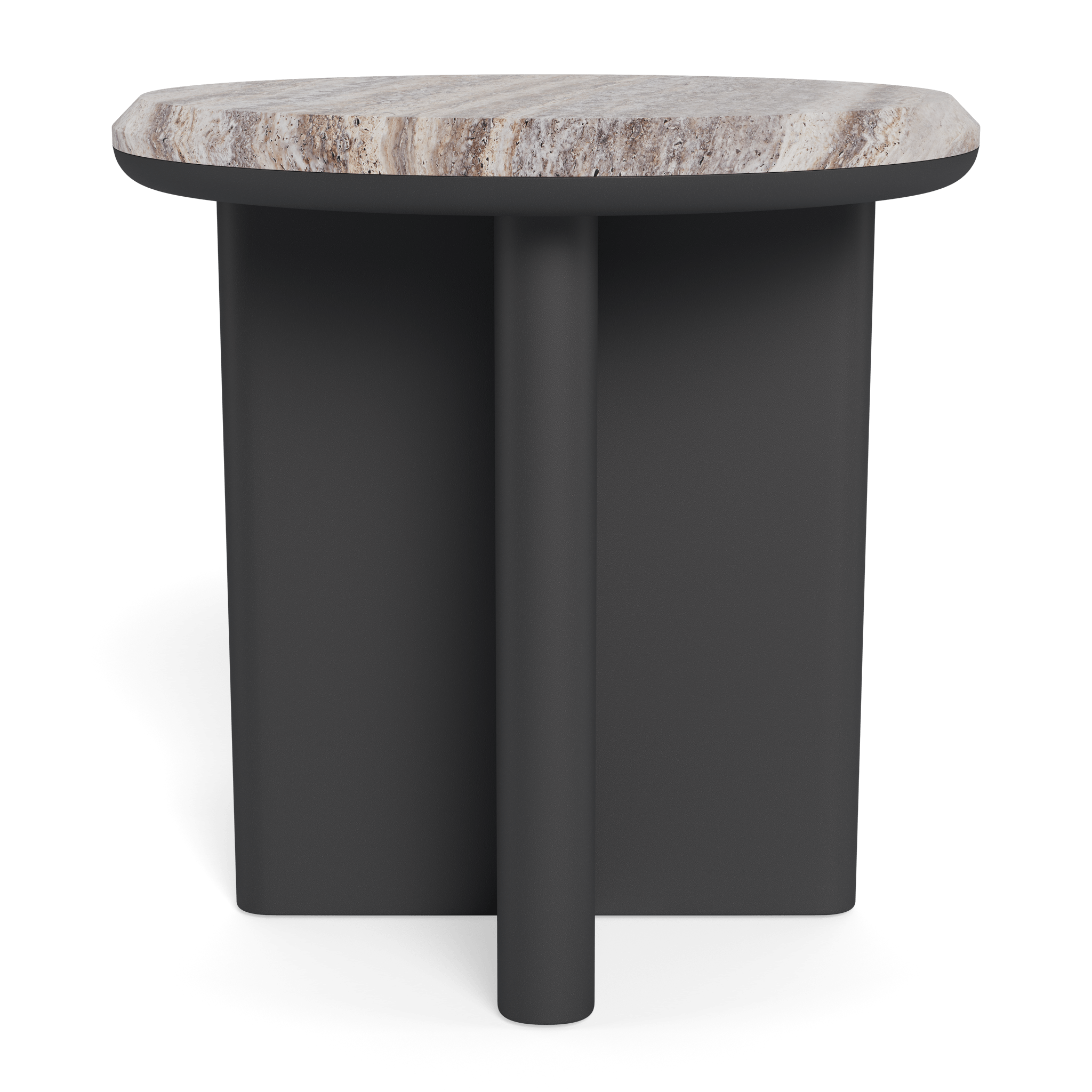 Palm Beach Aluminum Round Side Table | Aluminum Asteroid, Travertine Dark Grey,