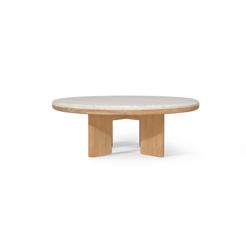 Palm Beach Teak Round Coffee Table | Teak Natural, Travertine Cream,