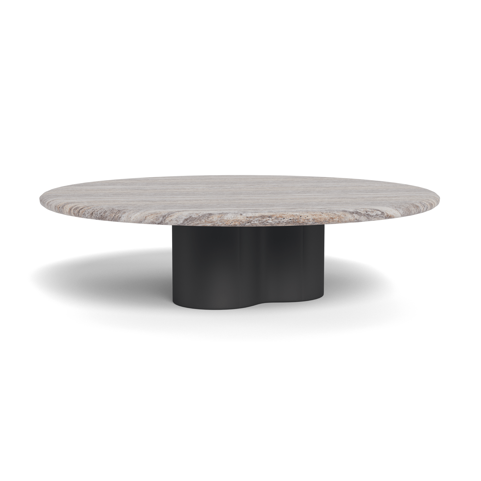 Prized by the ancient Romans for durability and aesthetics, Travertine has been used for outdoor and structural use for centuries. Travertine is a sedimentary limestone deposited by mineral springs with formations located all around the world and is characterized by organic pitting and beautiful and unique patterns . Our Dark Grey Travertine is hand-selected for it's wonderful swirling balance of grey, brown and charcoal adding a bold but tonally cohesive statement to our tables. While incredible strong and durable, we fill and seal this Travertine in the production process, adding a smooth hand and extra layer of protection from use and the elements.