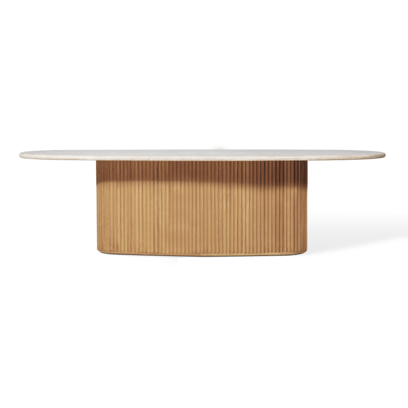 Named for the storied Greek island of Rhodes, this collection takes its cues from the timeless beauty of Lindos, where fluted columns still stand as some of the purest examples of ancient architecture. Drawing on this heritage, Rhodes translates the vertical rhythm of classical design into sculptural outdoor tables that blur the line between indoor refinement and outdoor durability.