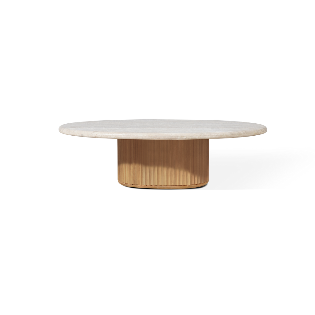 Drawing inspiration from the timeless architecture of the Greek island of Rhodes, the Rhodes Teak Round Coffee Table 48" merges classical beauty with modern outdoor durability. Its sculptural fluted teak base reflects the vertical rhythm of ancient Lindos columns, offering a striking sense of structure and proportion. The natural travertine top—crafted in a perfectly balanced round silhouette with a soft half-bullnose edge—adds a refined, organic elegance. As a centerpiece for outdoor lounges or a standalone statement, this table captures the harmony of mixed materials, seamlessly blending indoor sophistication with outdoor resilience.