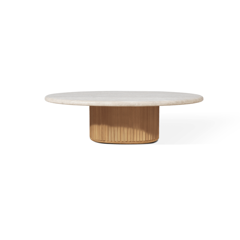Prized by the ancient Romans for its durability and timeless beauty, Travertine has been used in outdoor and architectural applications for centuries. This sedimentary limestone — characterized by organic pitting and unique patterns — is globally sourced and hand-selected for its tonal harmony with our teak and aluminum collections. Although Travertine is inherently strong, we enhance its resilience by sealing it during production, offering an additional layer of protection from the elements.