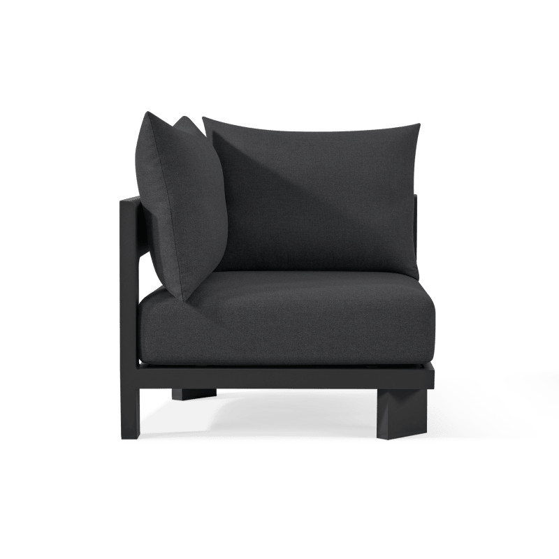 The Victoria Aluminum Corner unit brings sculptural balance and modular versatility to outdoor seating, offering a refined interpretation of mid-century geometry. Designed with gently curved back supports and crisp right-angle construction, this corner module anchors sectional configurations with harmony and proportion. Crafted from durable powder-coated aluminum and finished with plush quick-dry cushions, it delivers elevated comfort alongside clean, architectural lines. Whether used to build expansive custom seating or paired with standalone modules, the Victoria Corner enhances any outdoor space with timeless simplicity and modern performance.
